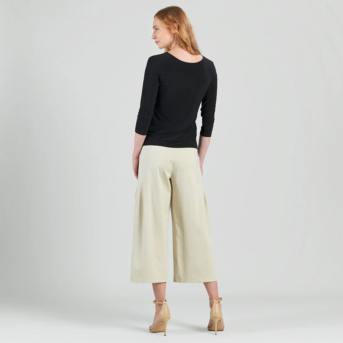 Reversible Back Tie Detail. Round Neckline, 3/4 Length Sleeves, Straight Hemline. 70% Polyester, 20% Rayon, 10% Spandex.