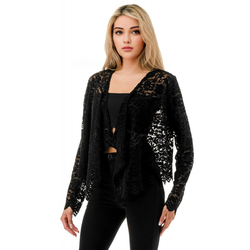 Long Sleeve Short Lace Jacket. 100% Polyester.