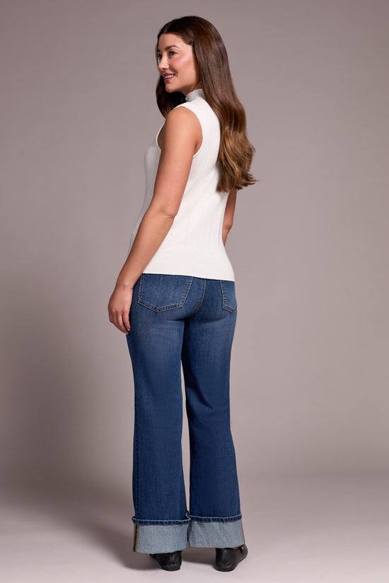 Textured Sleeveless Mock Neck Top. 70% Rayon, 30% Polyester.