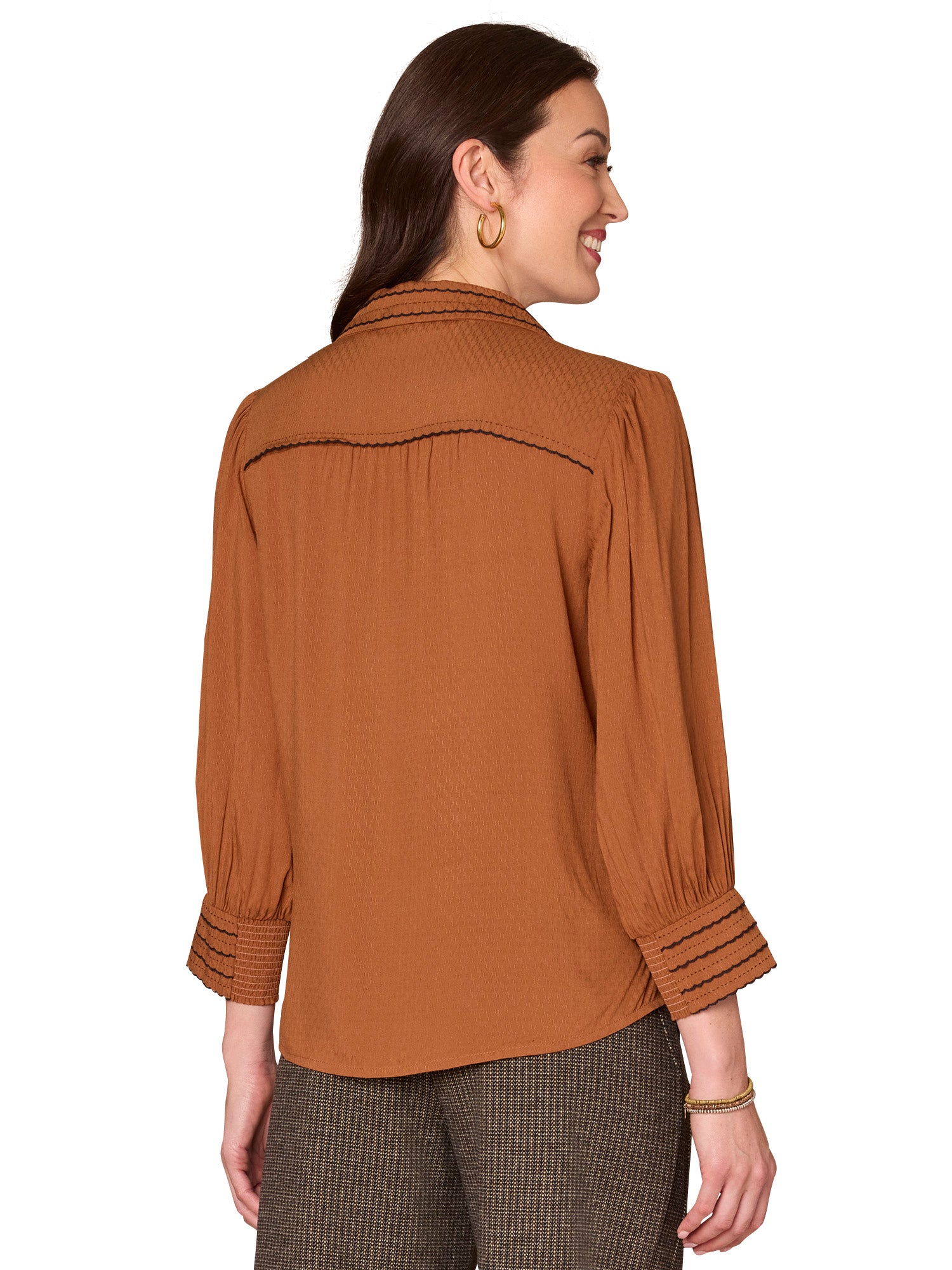 3/4 Sleeve Collar Button Down Shirt With Scallop Edge
