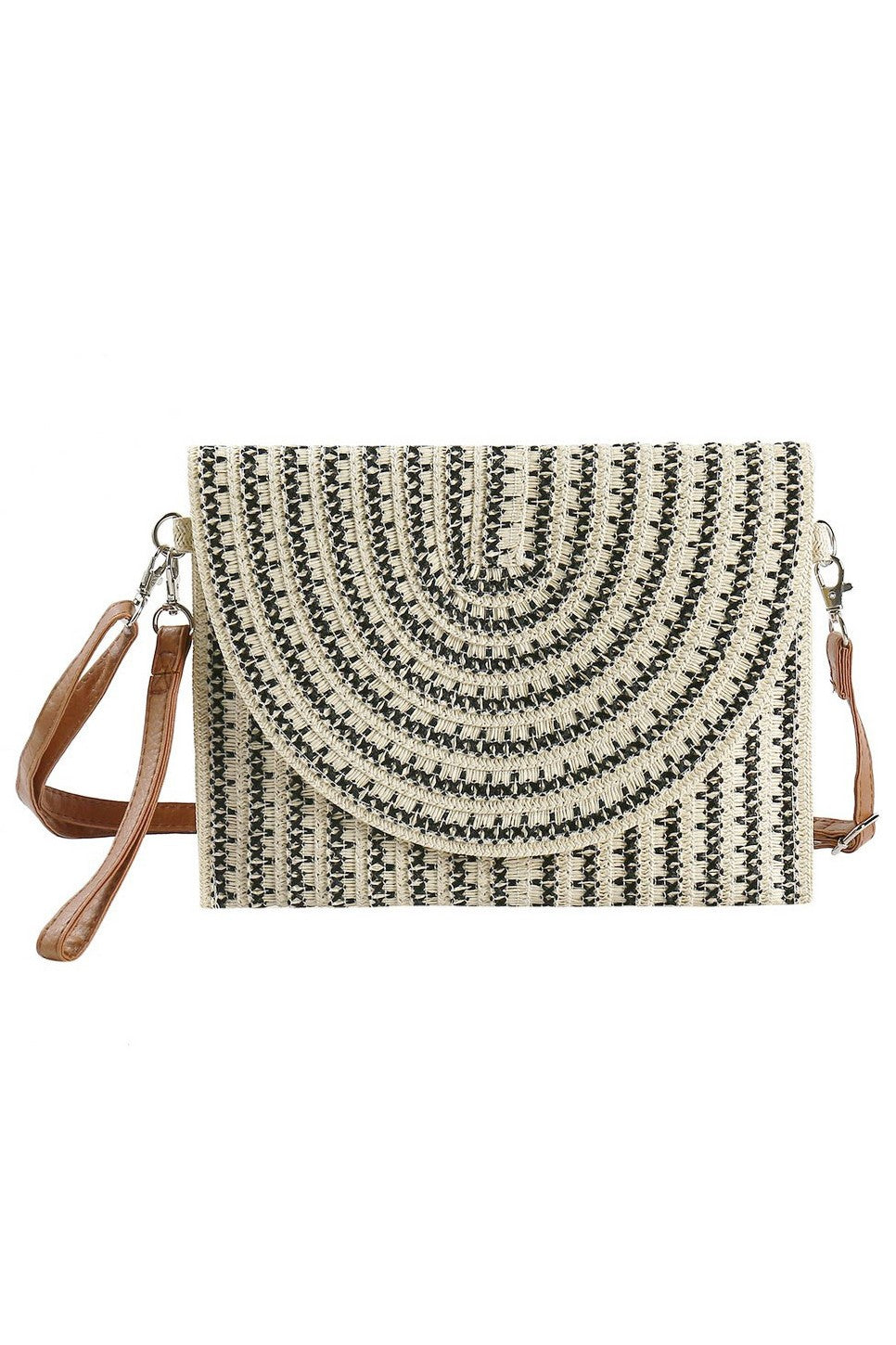 Black Stitch Two Tone Straw Clutch/Crossbody Bag