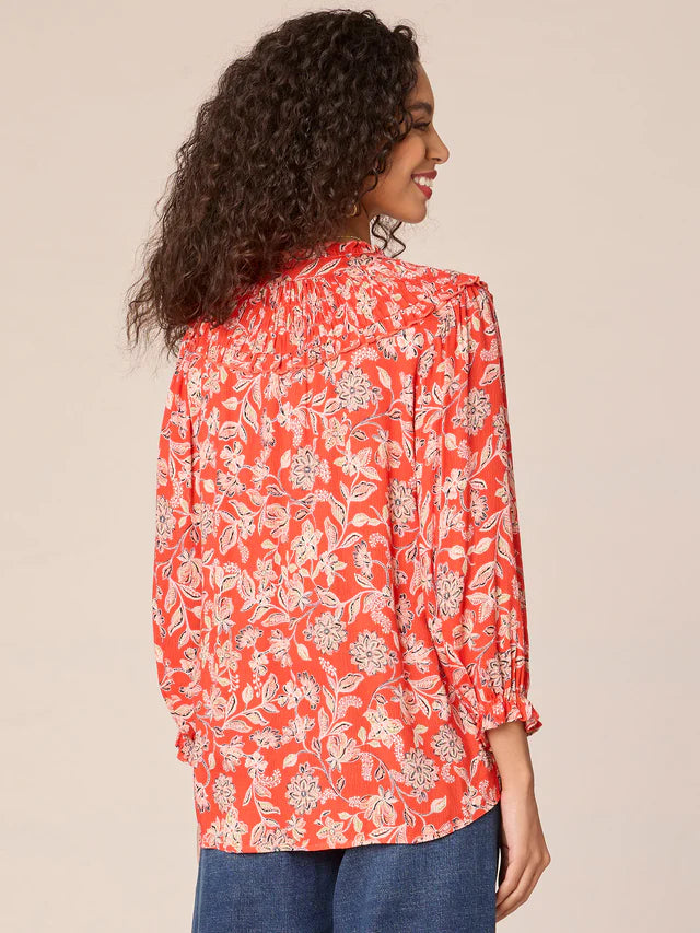 • Ruched yoke with ruffle