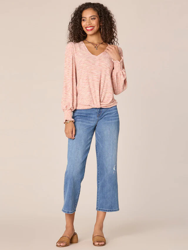 Blouson Sleeve Twist Hem Knit Top