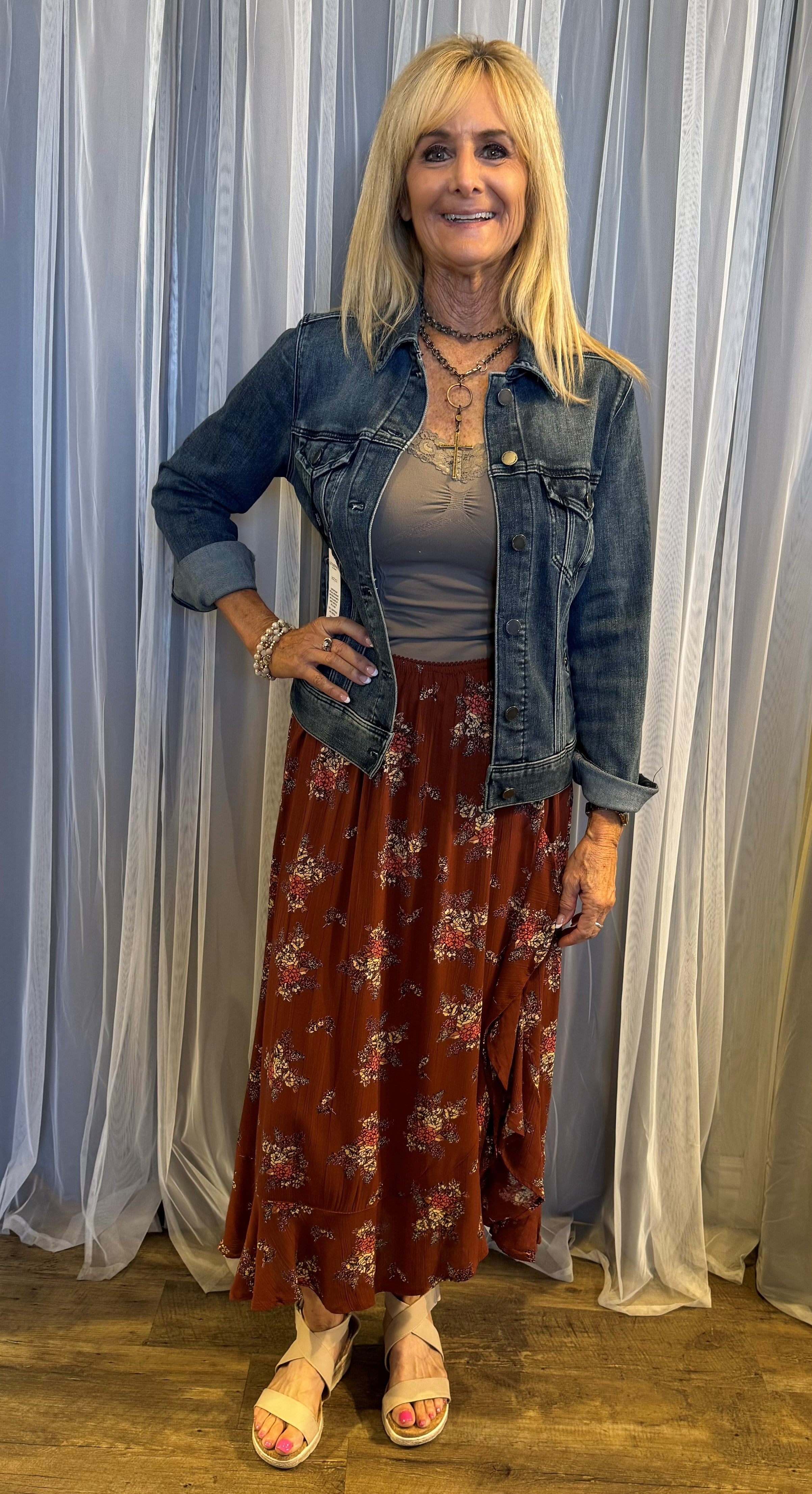 Bohemian Midi Skirt w/Ruffle and Side Slit