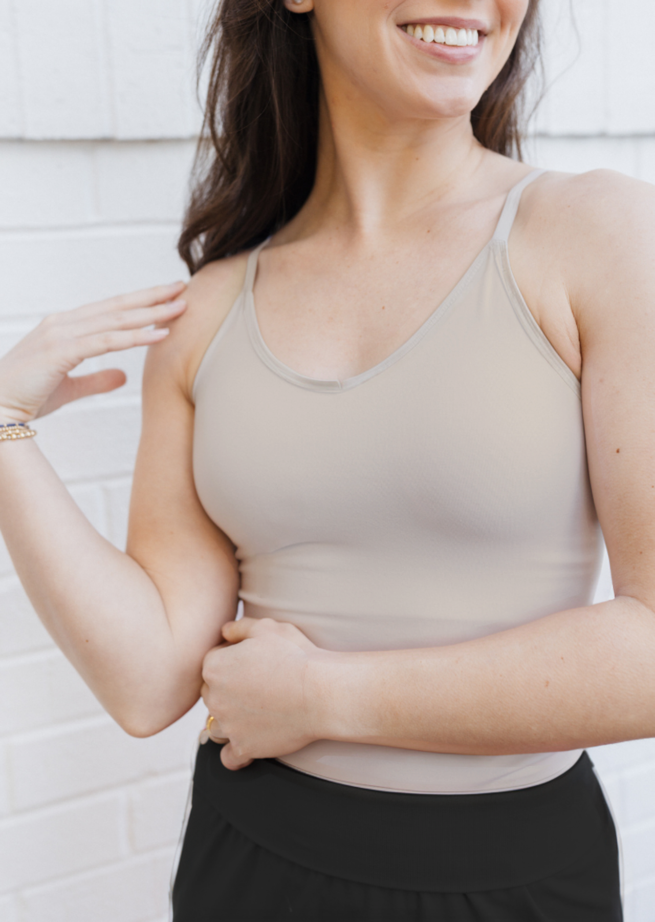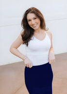 Introducing our buttery soft Cami with a built-in bra for ultimate support and comfort in your base layer. Featuring a V neckline, supportive & adjustable straps, and removable padding, this Cami provides smoothing coverage for all-day wear. Say goodbye to uncomfortable bras and hello to effortless style and comfort with our Built-In Bra Cami.