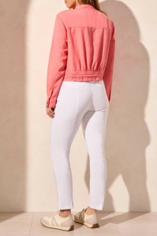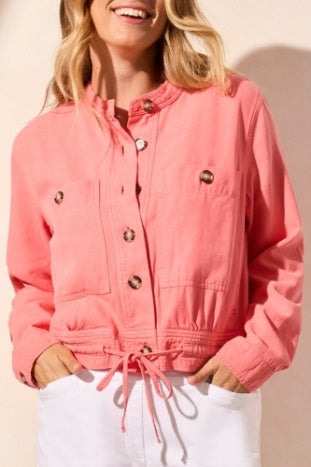 Button Front Jacket w/Drawcord In Hem. 53% Cotton, 47% Lyocell.