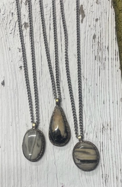 BV Tiger Jasper Bezel Long Necklace