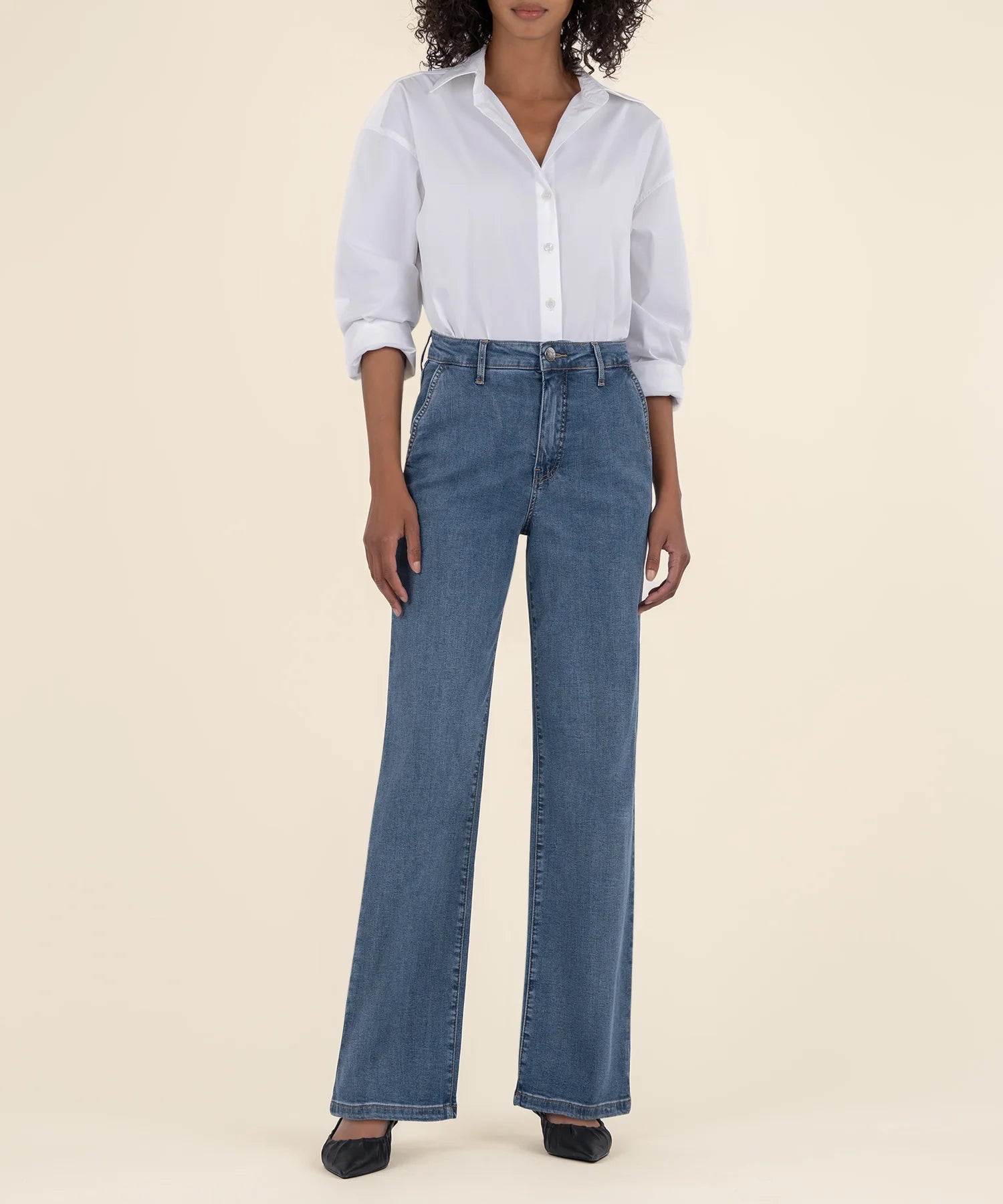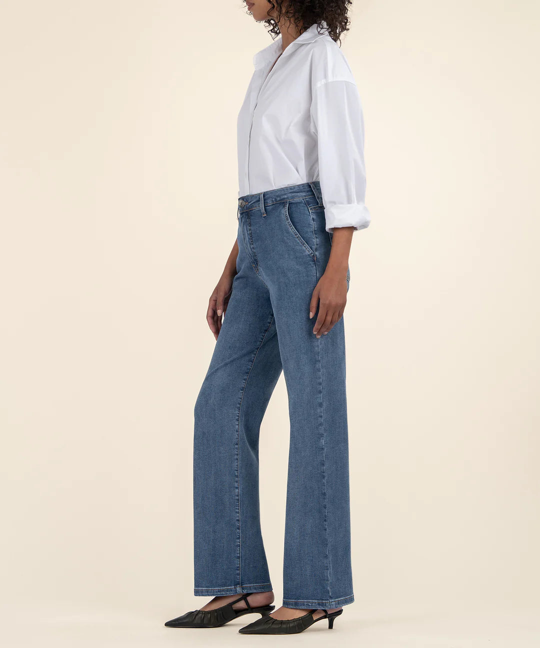 High Rise Straight Leg. 62% Lyocell, 29% Cotton, 7% Polyester, 2% Spandex.