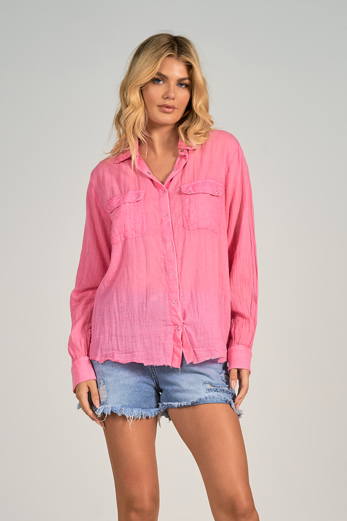 Collared Button Down Top w/ Fray Hem-SP23