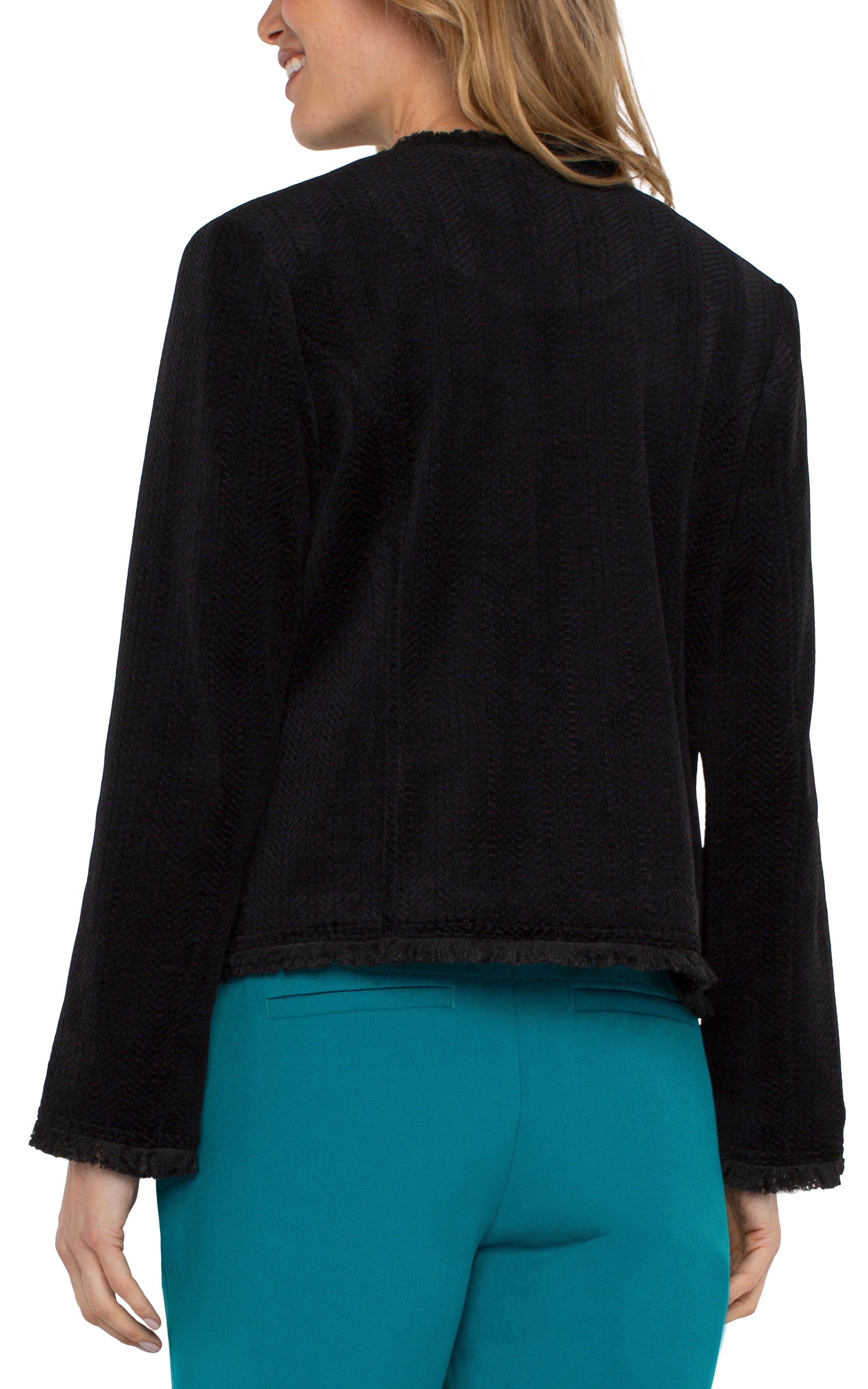 Collarless Jacket w/ Frayed Edges