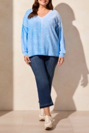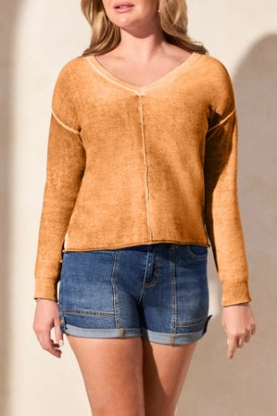 Lightweight Cotton V-Neck Sweater w/Special Wash Effect. 100% Cotton/coton.