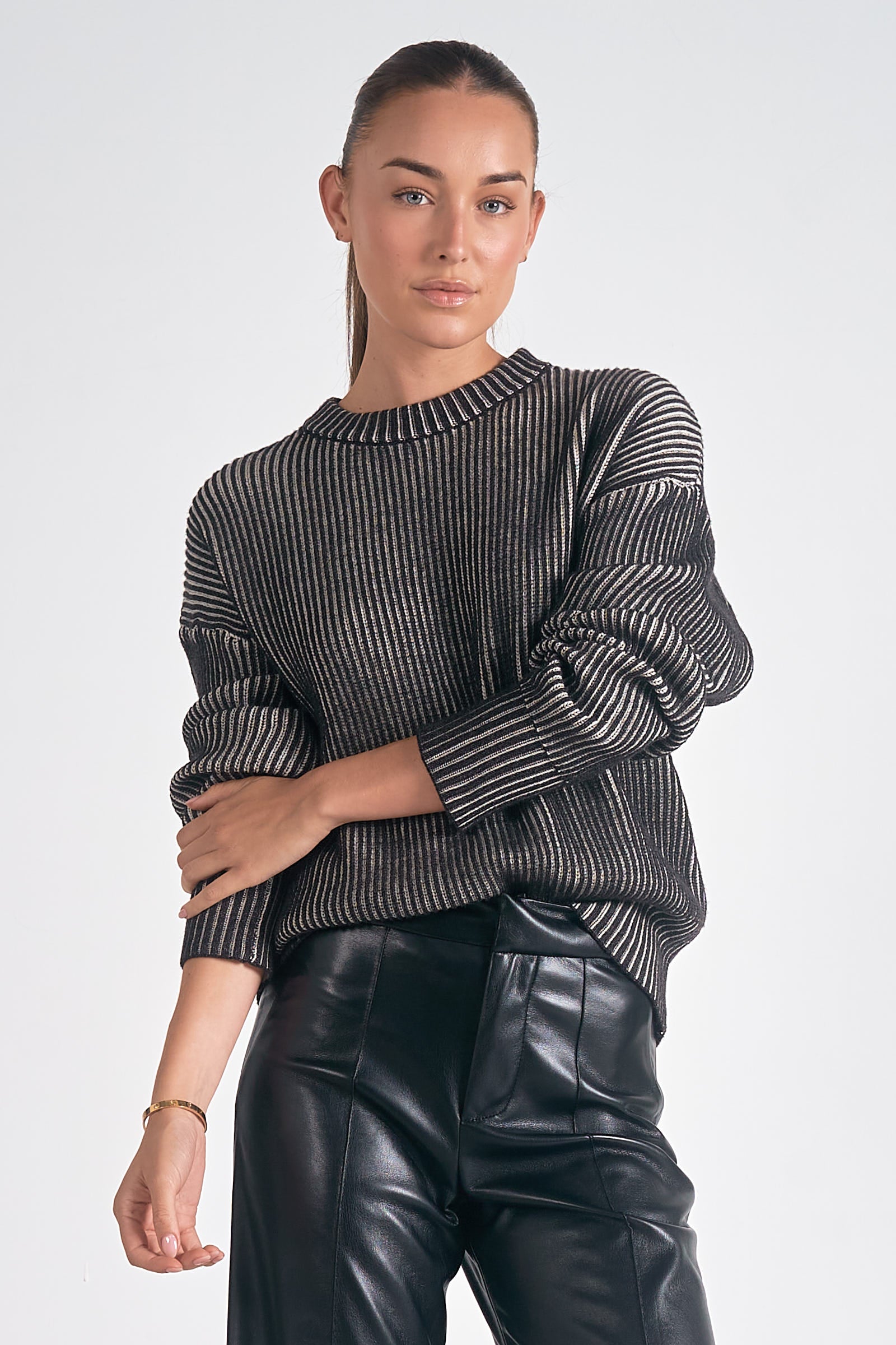 The Kendra sweater offers relaxed style with its crewneck design. A ribbed texture and ombre color effect add visual interest, while a cuffed sleeve and cool, relaxed fit ensure effortless chic.