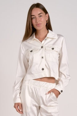 Crop Button Down Jacket. 60% Lyocell, 37% Cotton, 3% Spandex.