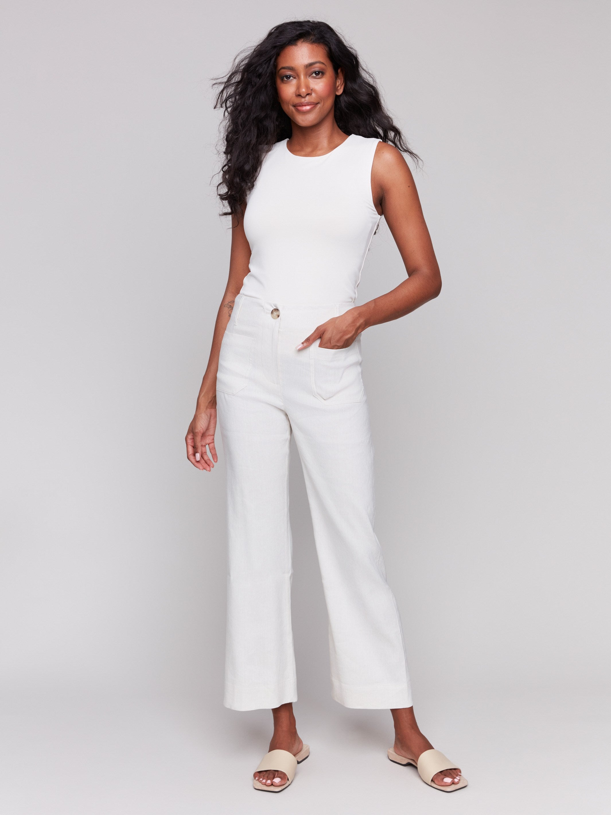 Cropped Linen Blend Straight Leg Pant With Patch Pockets