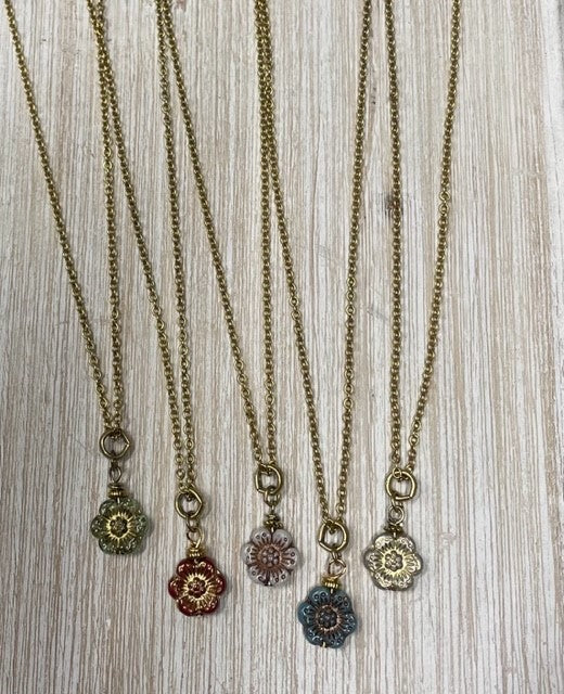 Czech Glass Flowers on Short Chain