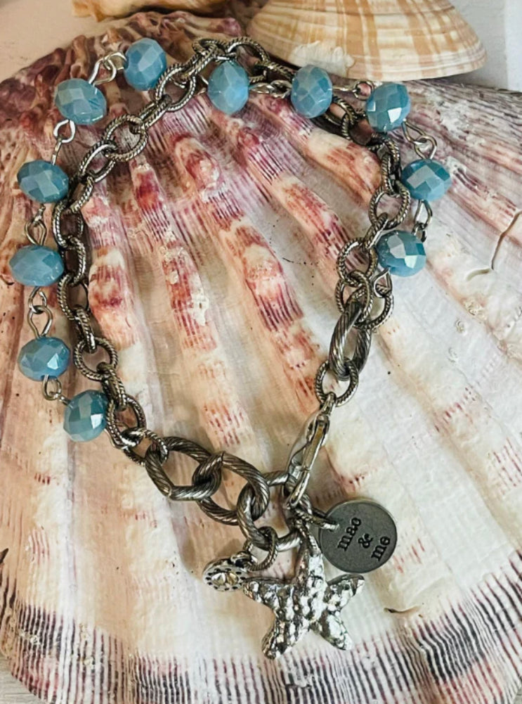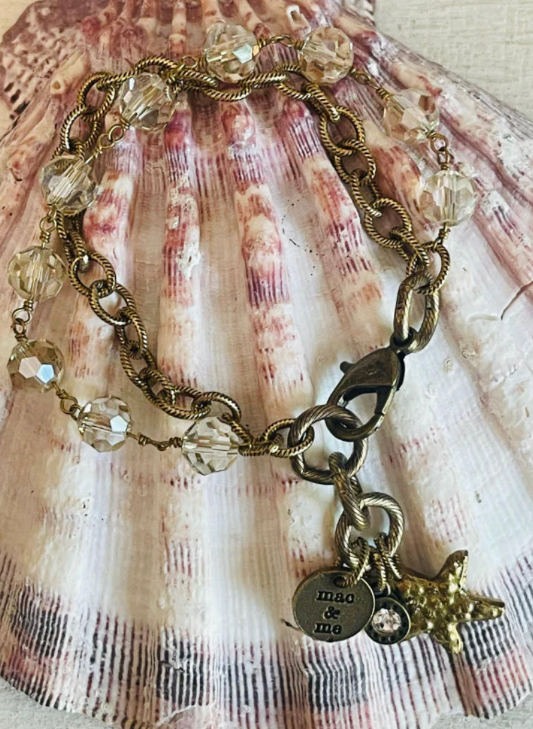Dainty Starfish on Manipulated Brass Plated & Crystal Chain w/Mac & Me Pewter Logo Tag & Mini Crystal