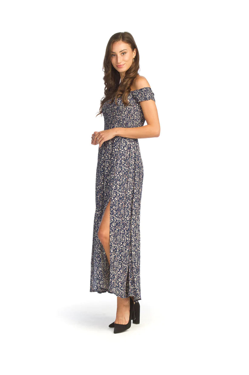 Ditsy Floral Smocked OTS Dress w/ Slit