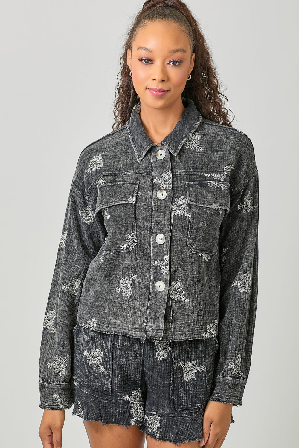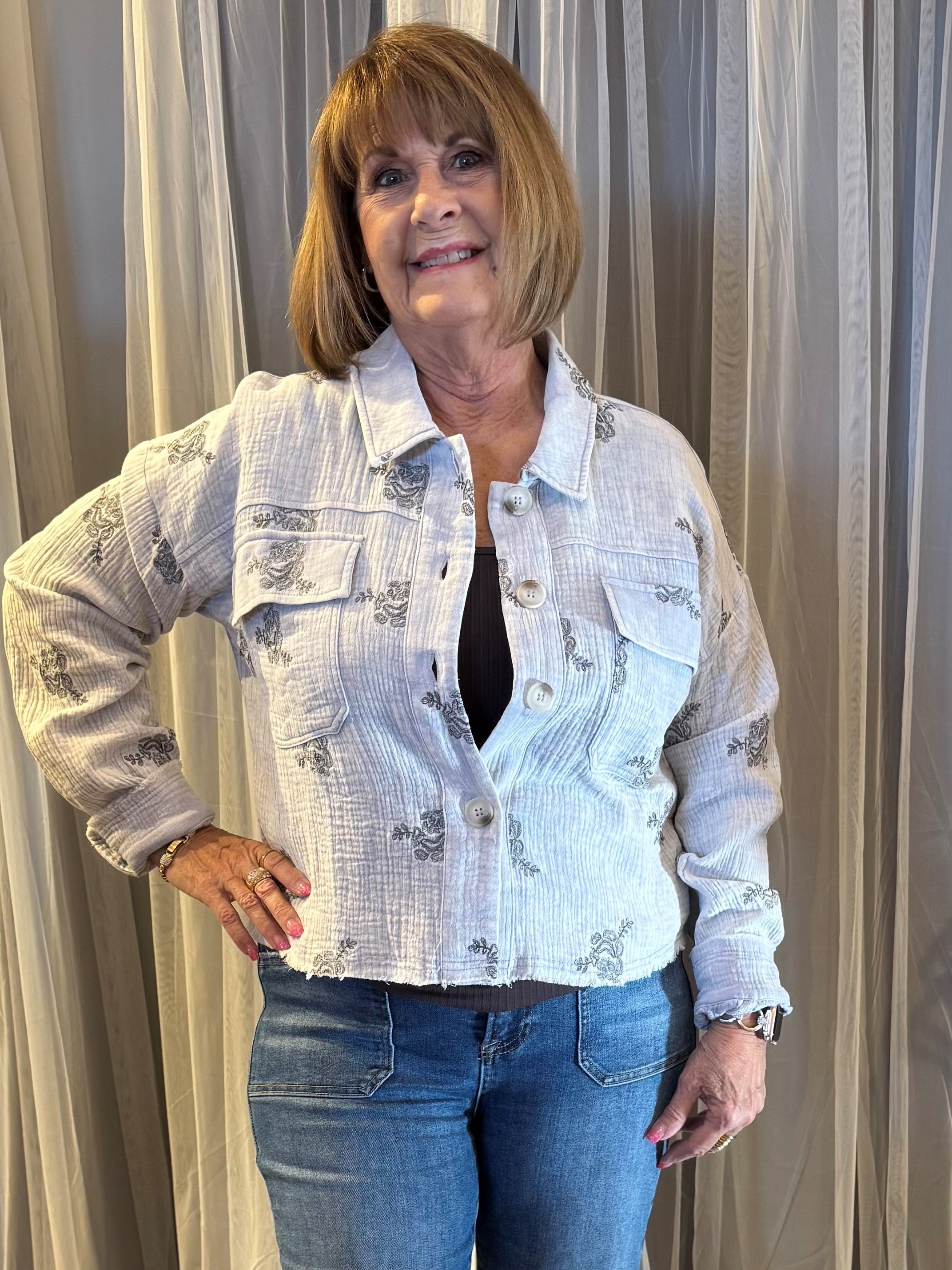 Double Gauze Embroidery Jacket. 100% Cotton.