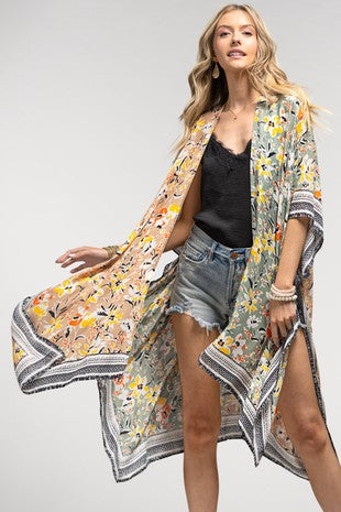 Duo Tone Floral Print Kimono