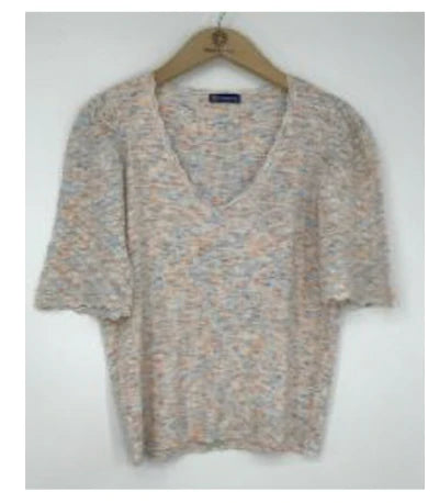 Elbow Length Pointelle Sleeve V-Neck Sweater