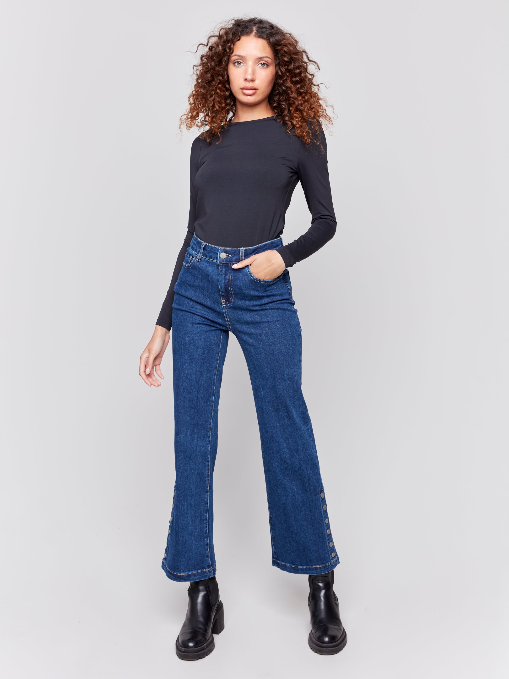 Flare Jeans with Side Buttons