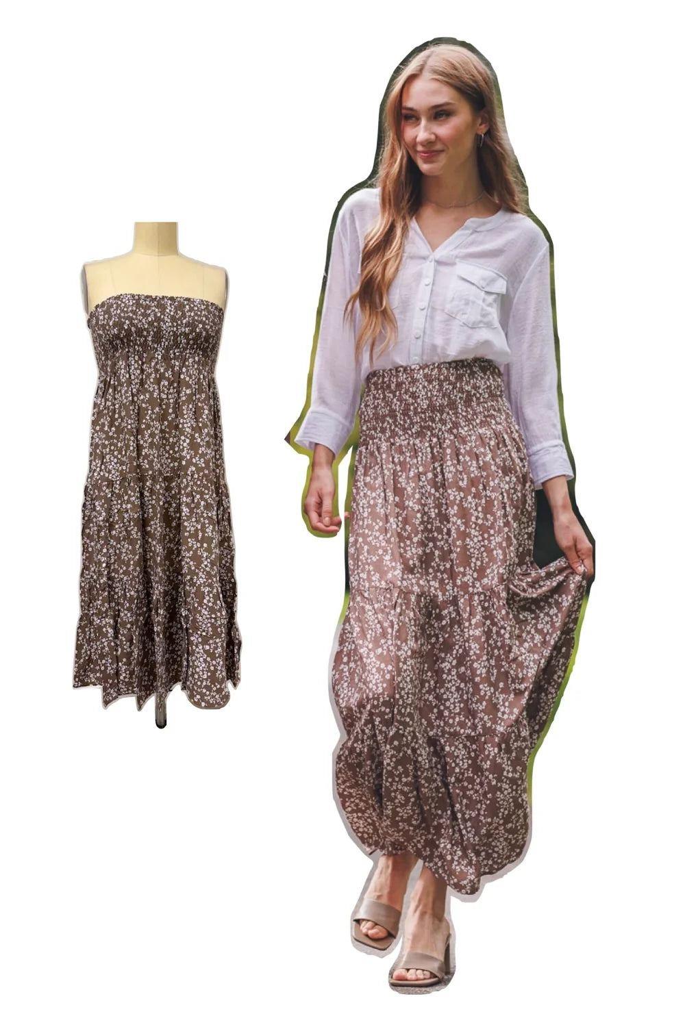 Floral Convertible Tiered Maxi Skirt. 100% Viscose.