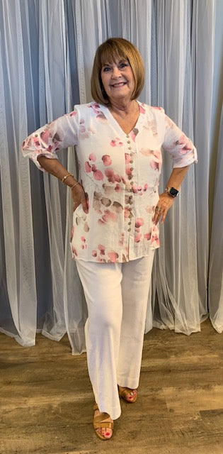 Floral Crinkle Layered Tab Sleeve Blouse