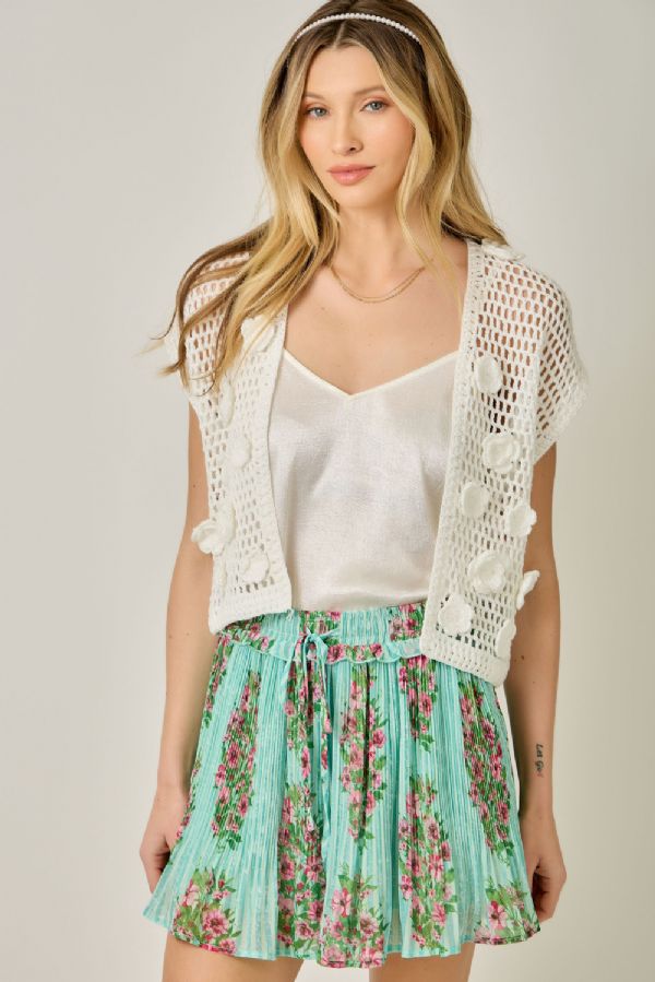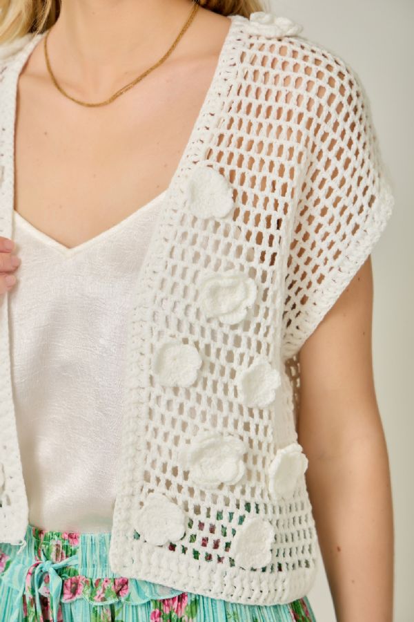 3D Floral Crochet Cardigan w/Short cap sleeves
