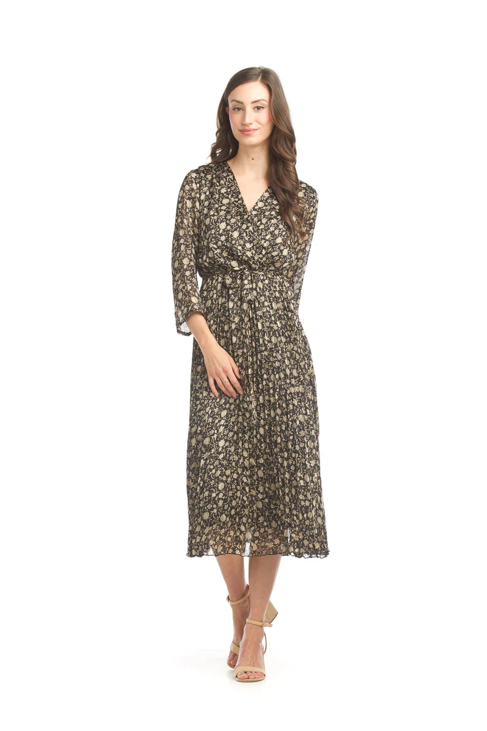 Floral Print Long Sleeve Wrap Dress w/ Flowing Pleated Skirt. 100% Polyester.