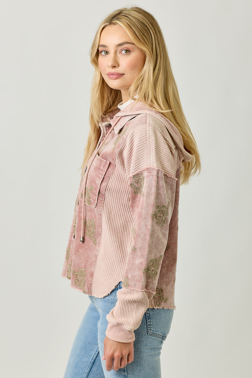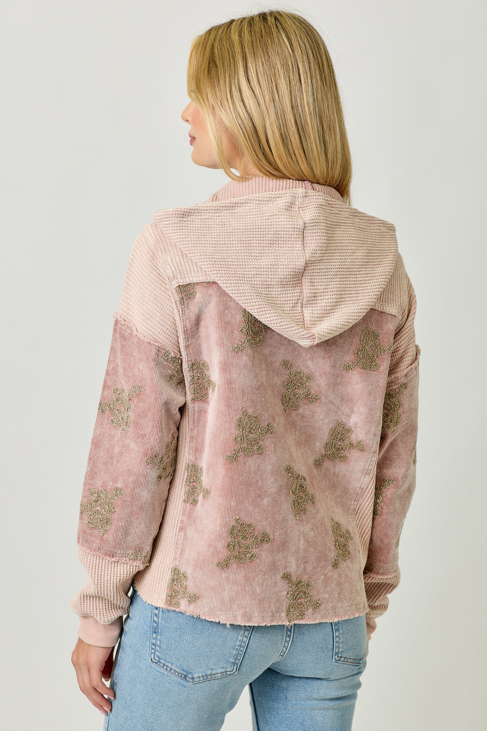 Flower Embroidery Hoodie Jacket