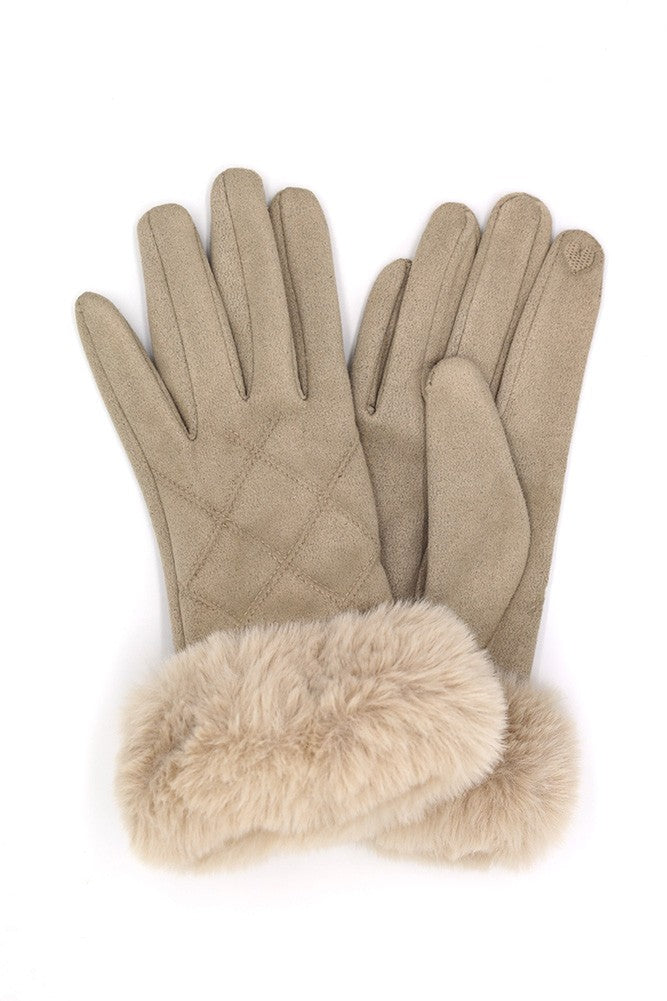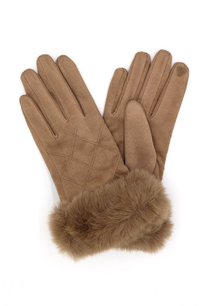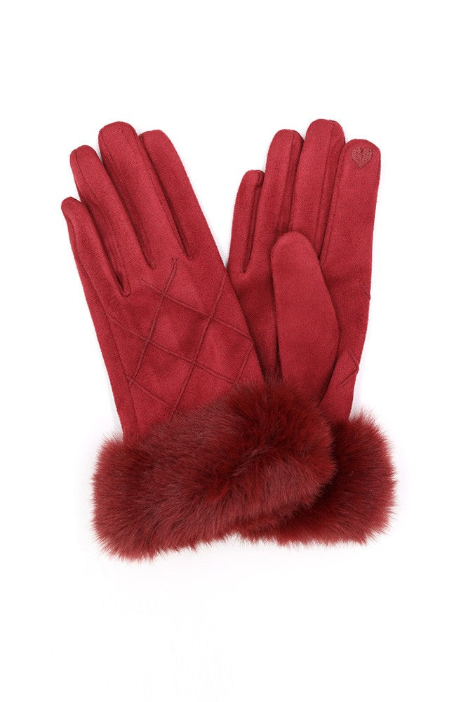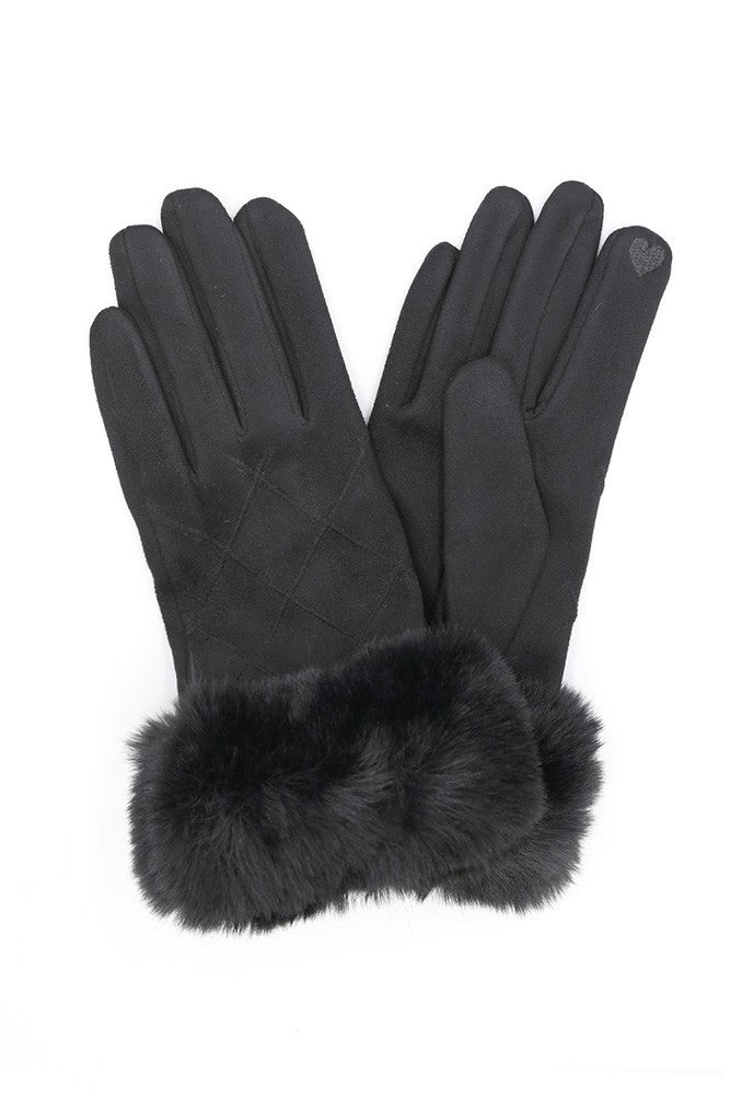 Fluffy Faux Fur Suede Gloves w/ Smart Touch