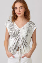 Ivory/Grey 94% Cotton, 6% Spandex / Lavender and Mint 62% Rayon, 34.5% Cotton, 3.5% Spandex