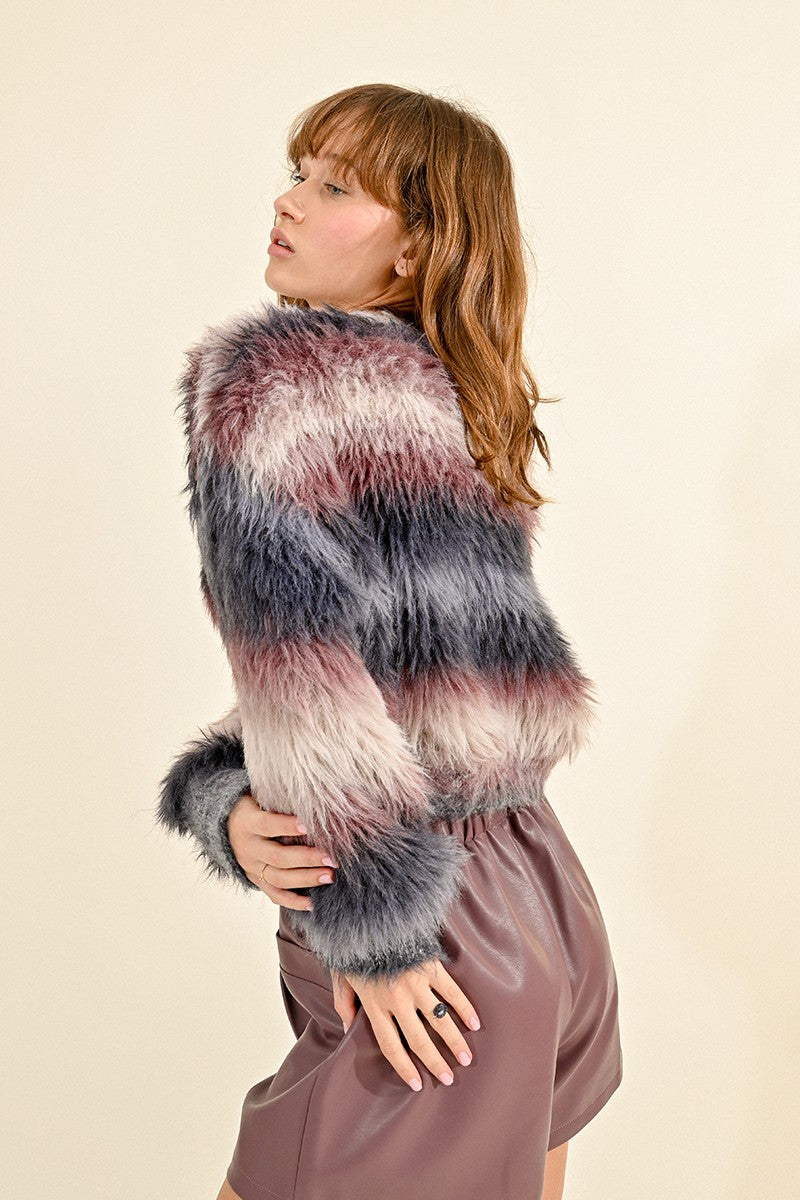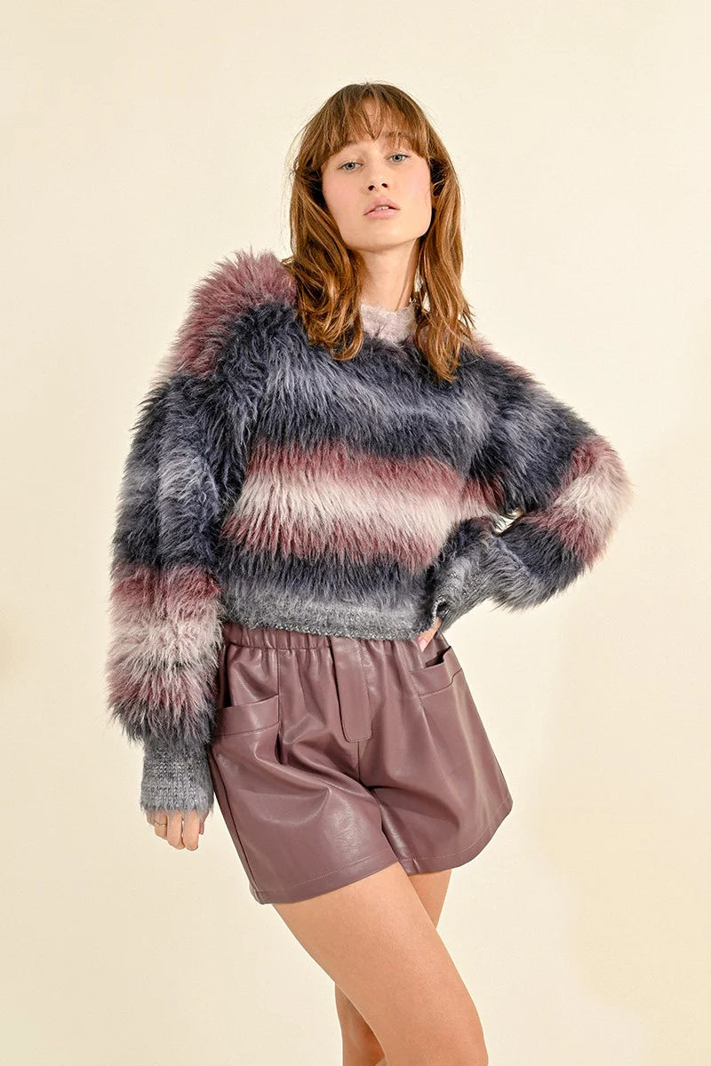Fur Effect Knit Striped Sweater
