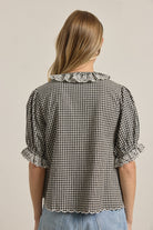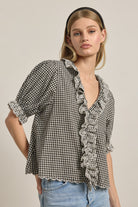 Gingham Lace Ruffle Blouse