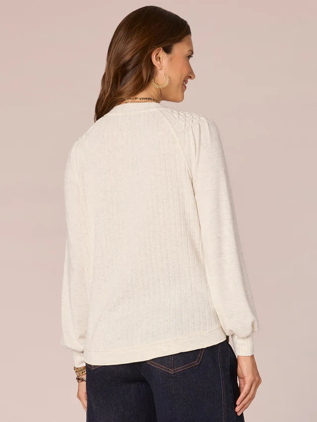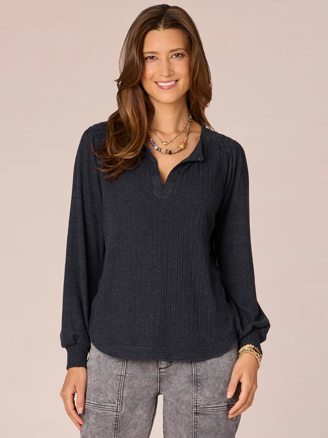 Half Placket Mixed Media Knit Top