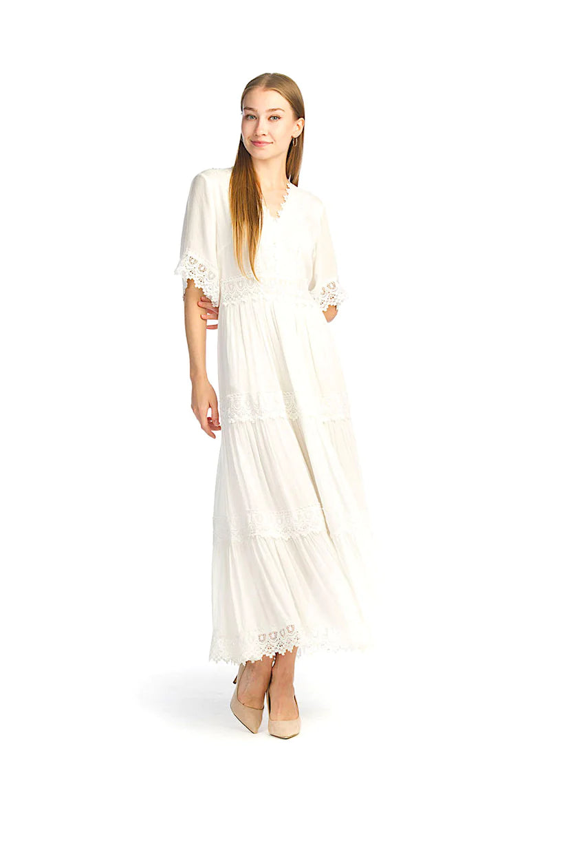 Lace Trim Short Sleeve Maxi Dress
