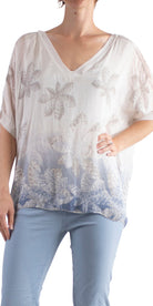 Leaf Print V Neck Short Sleeve Top