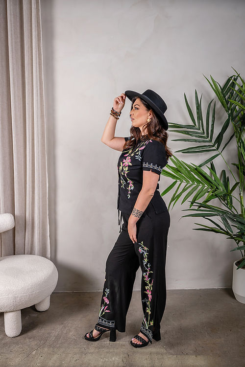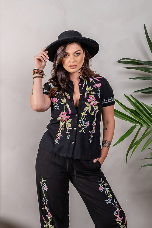 Linen Blend Embroidered Short Sleeve Shirt