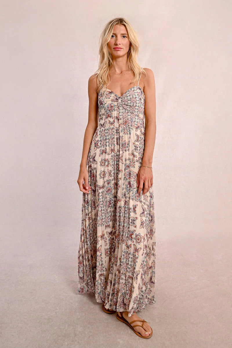 Long Dress w/Straps and Print. V-Neckline. 95% Polyester, 5% Elastane.