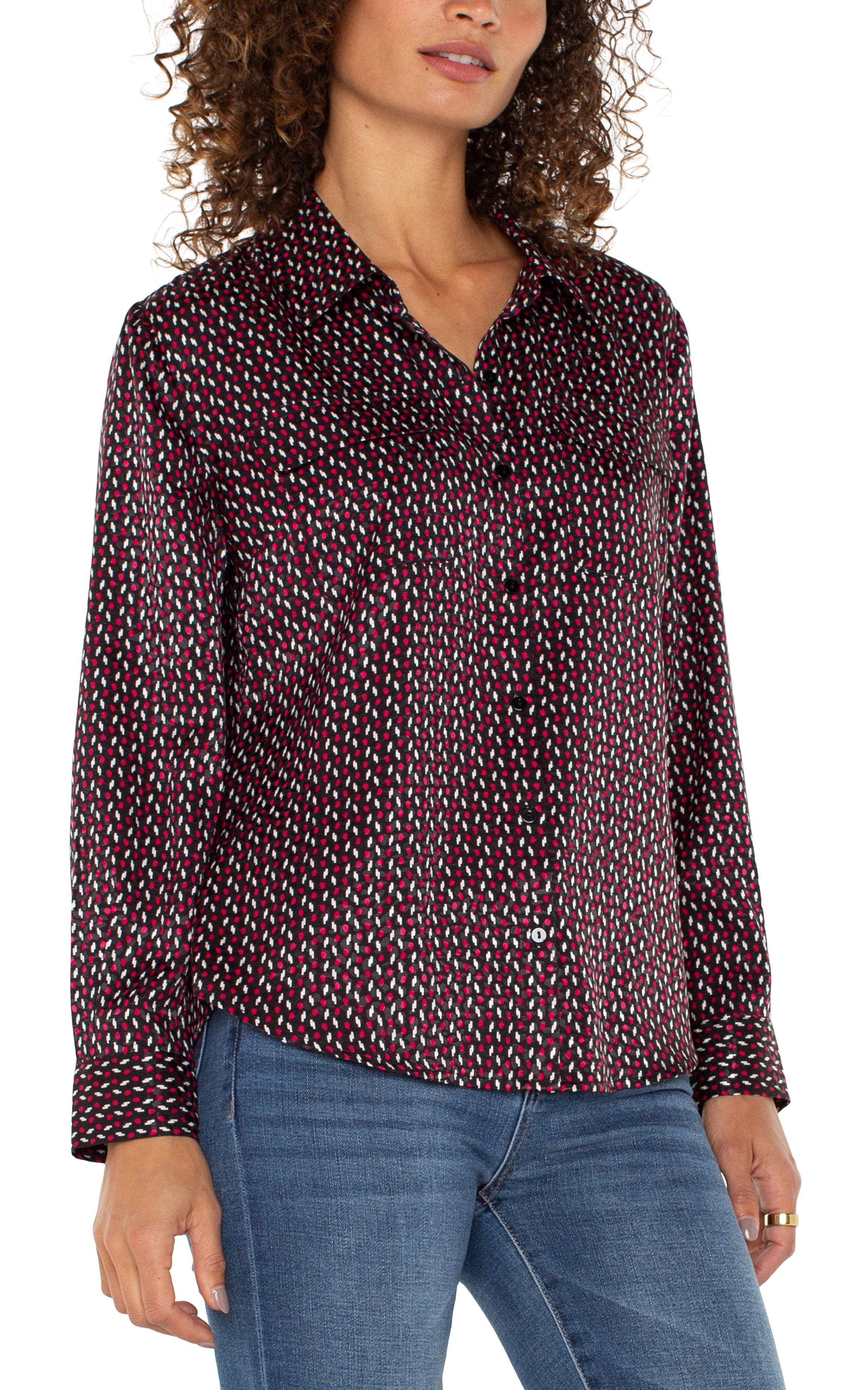 Long Sleeve Flap Pocket Button Front Woven Shirt