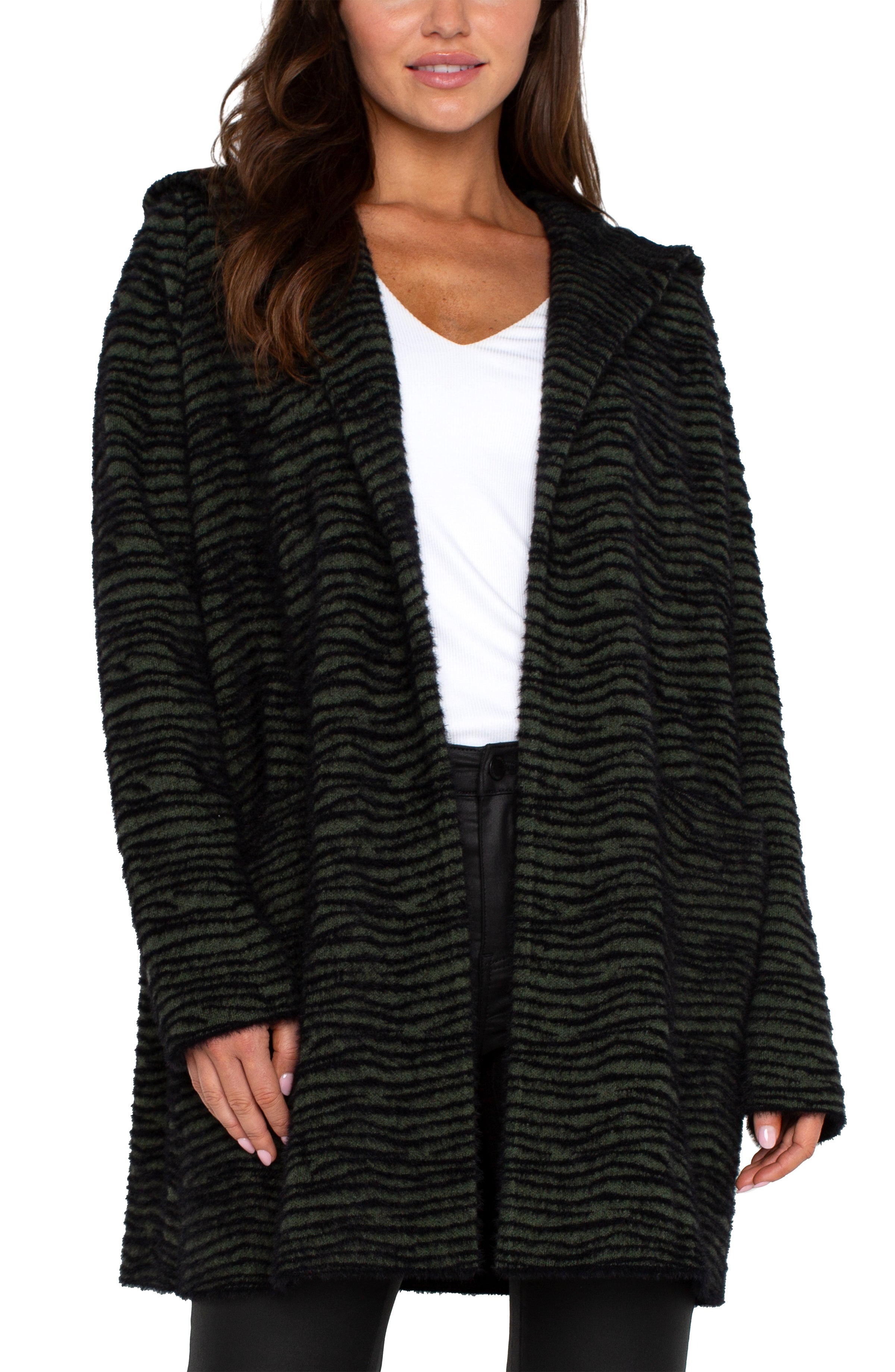 Long Sleeve Open Front Sweater Coat w/ Hood