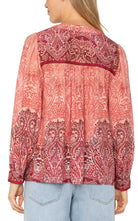 Long Sleeve V-Neck Popover Woven Blouse