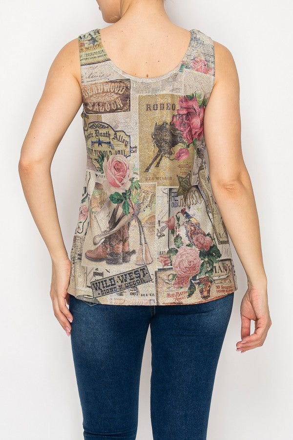 Subtly Sparkly Lurex Fabric Tank Top. 50% Nylon, 45% Metallic, 5% Spandex.