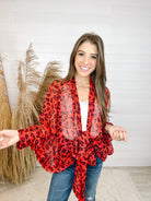 Mac & Me Red Animal Print Tie Kimono