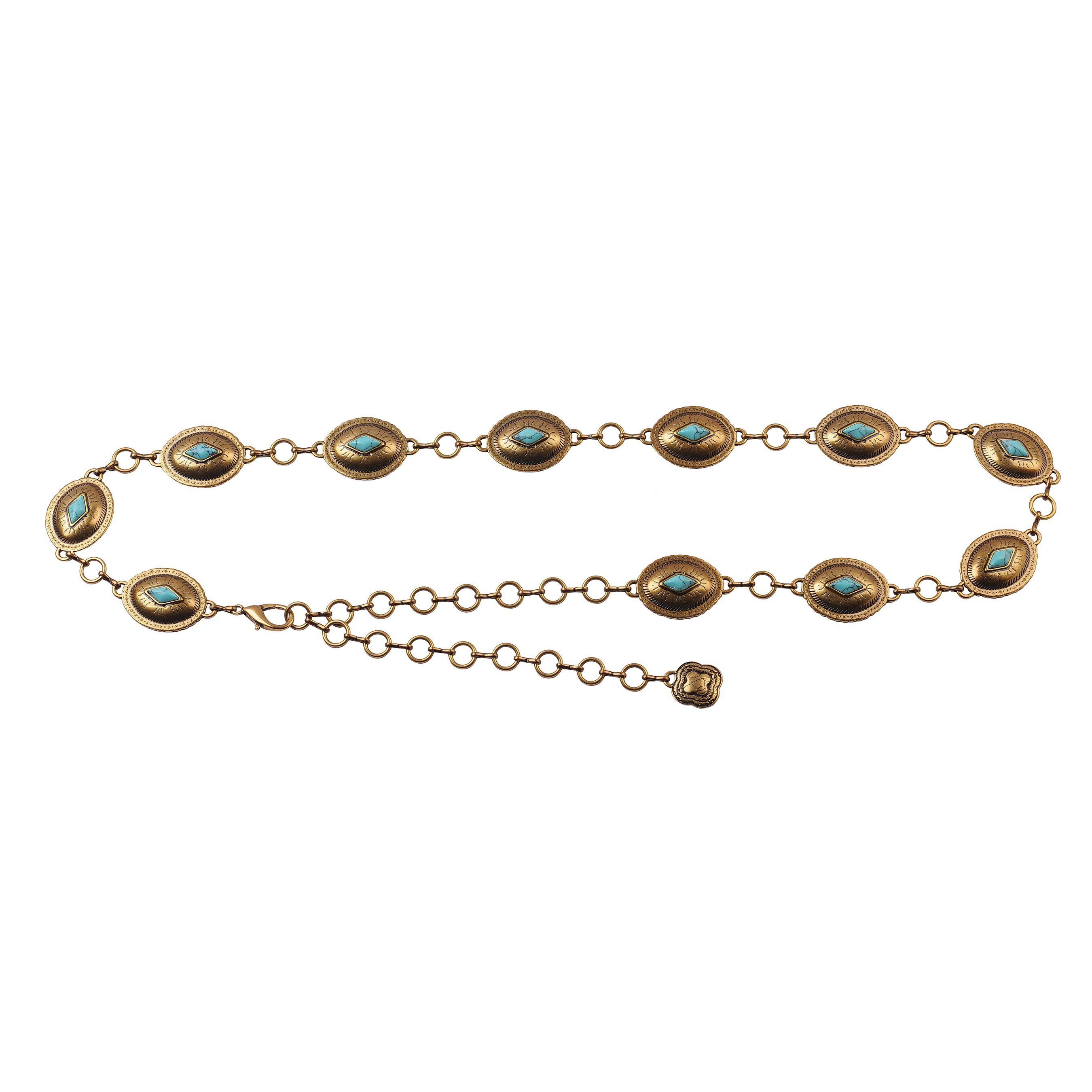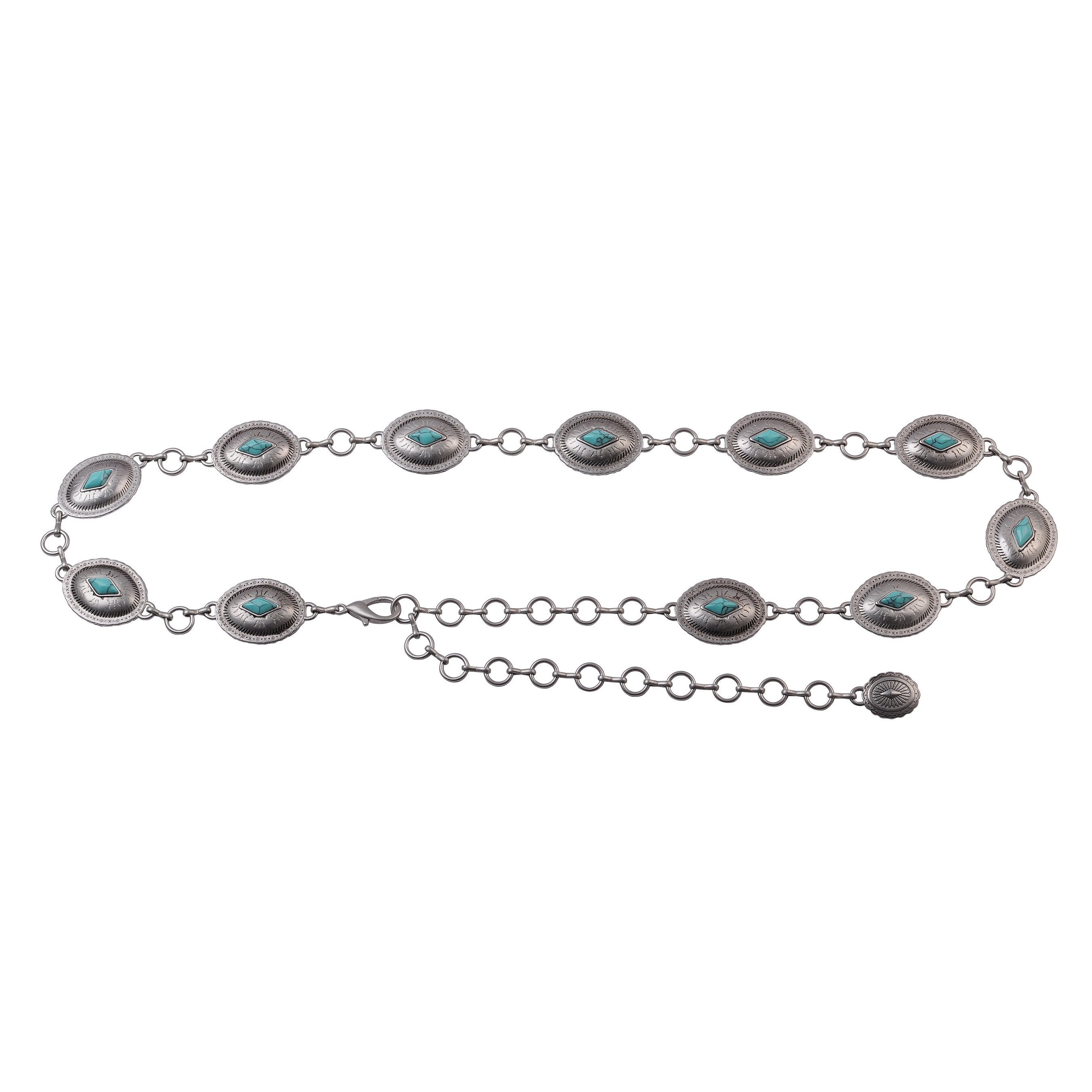 Mini Oval Turquoise Tinted Rhinestone Western Buckle Belt