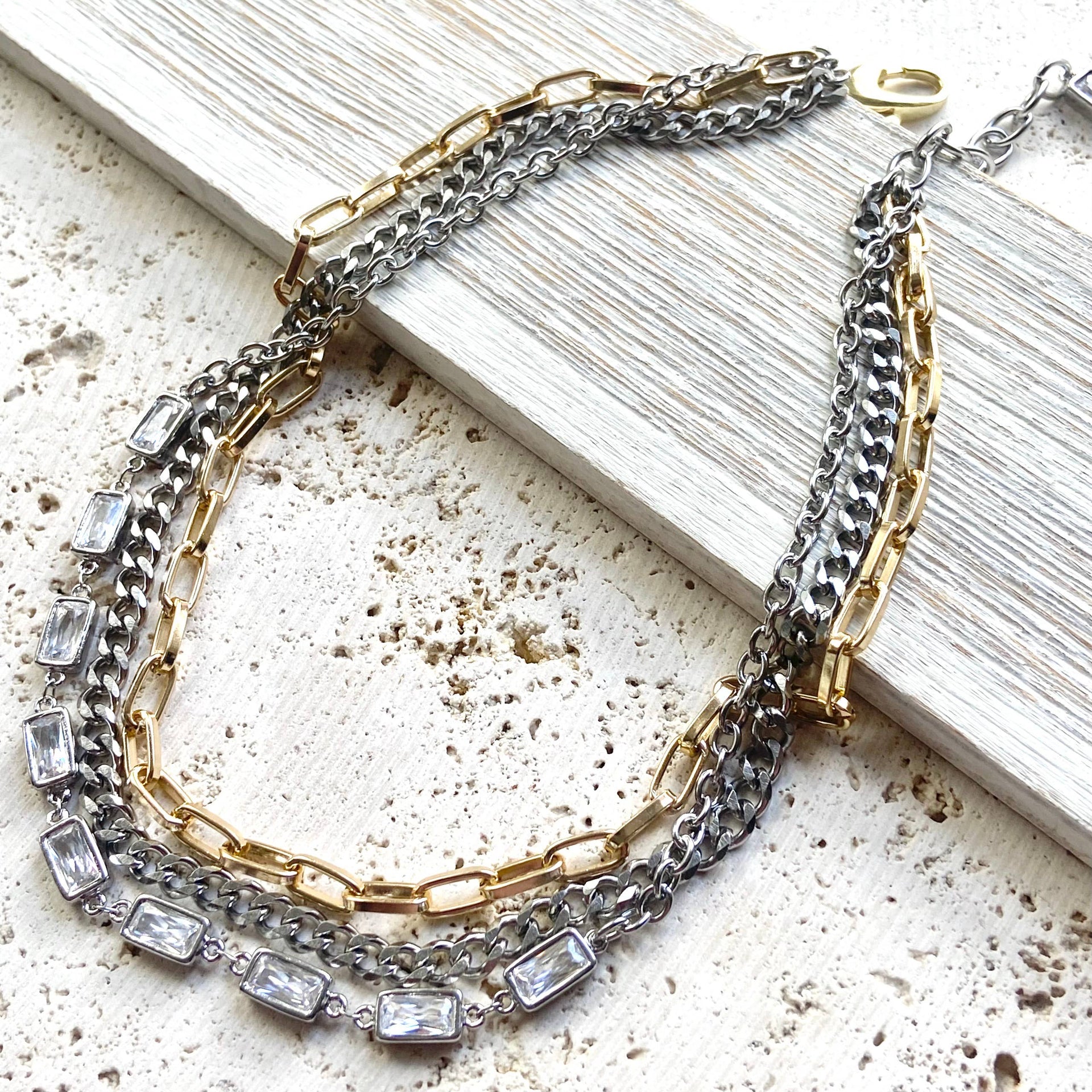 Mixed Metal Non Tarnishing Necklace Edgy Glam Jewelry