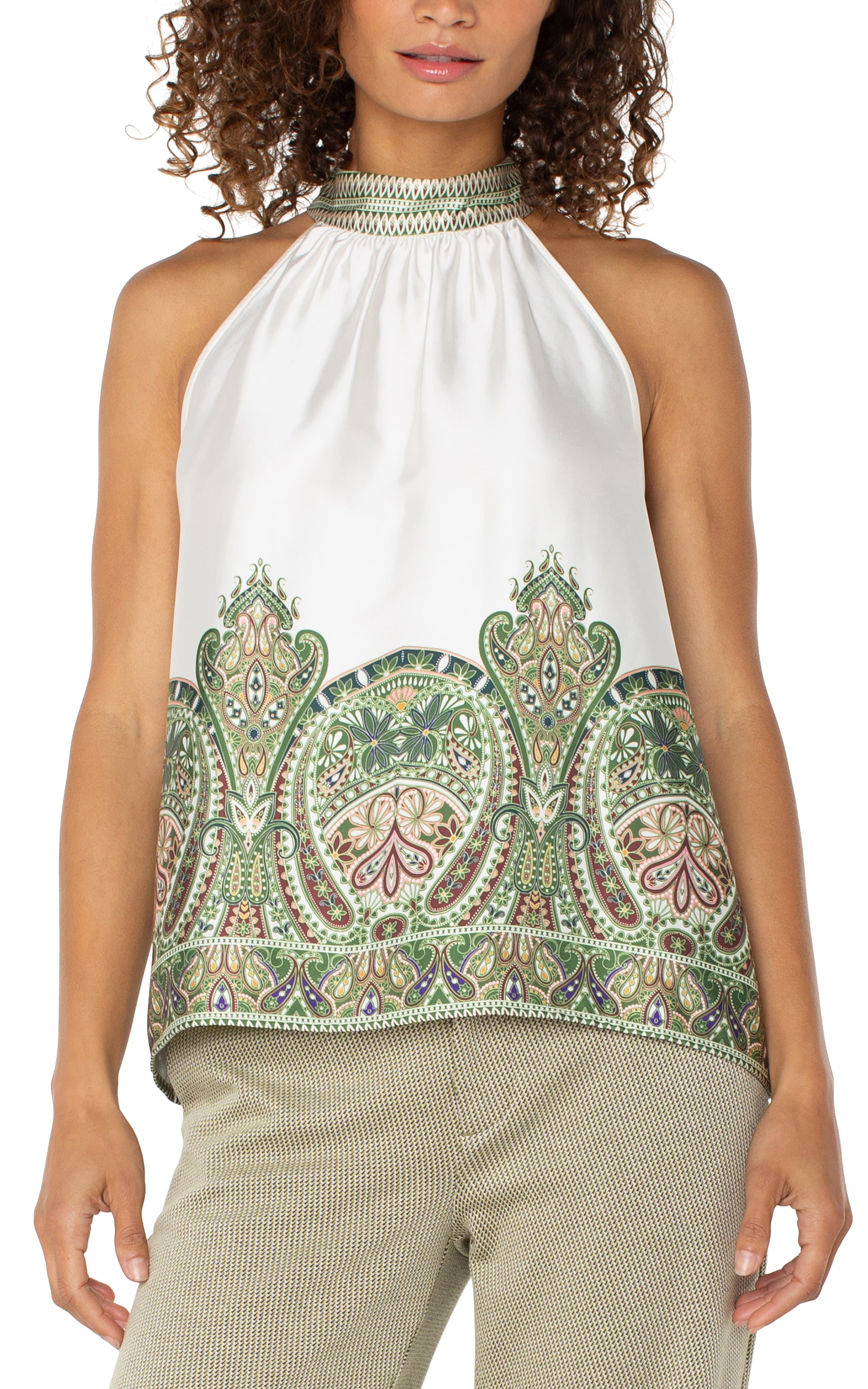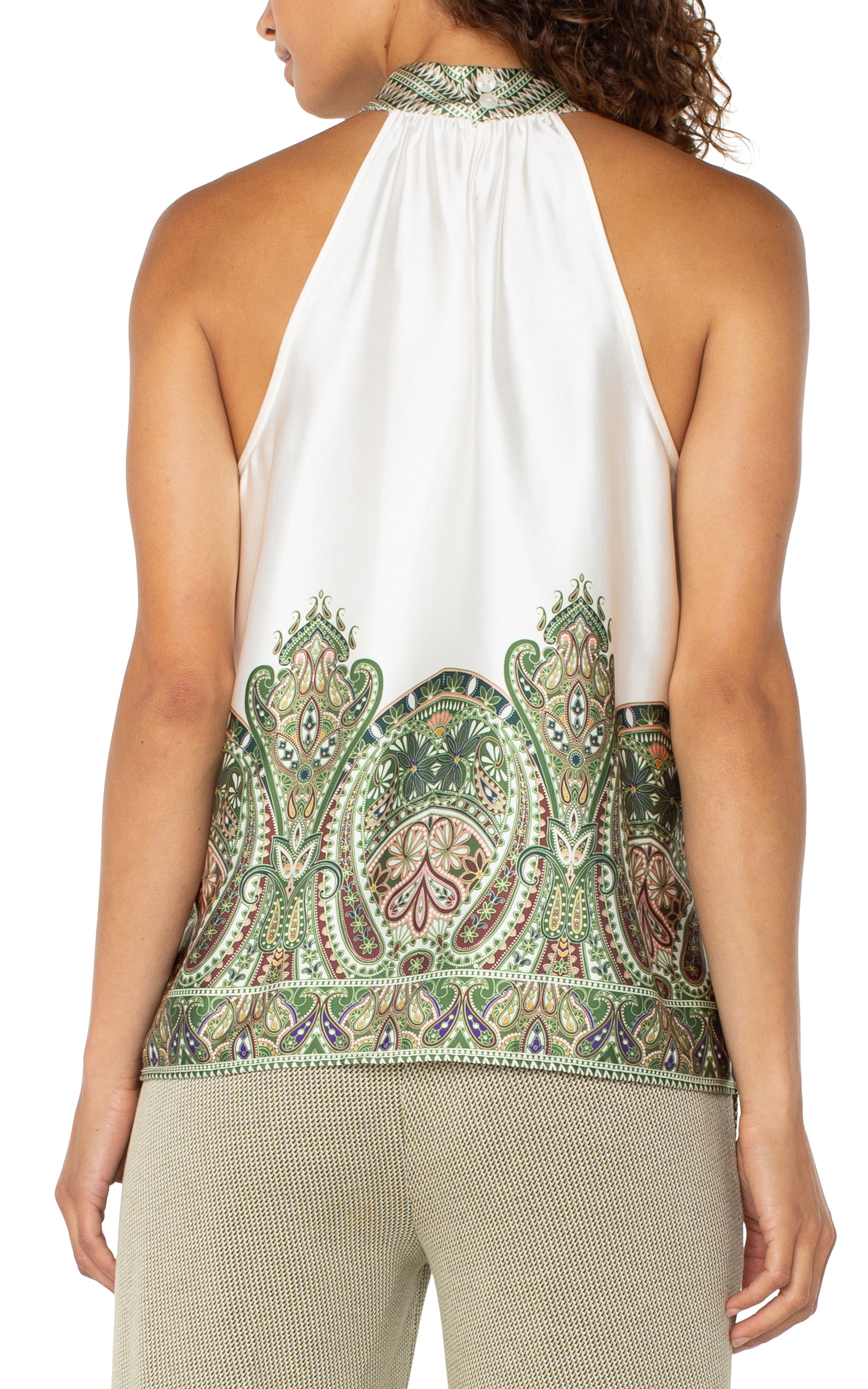 Make a statement in our Layered Halter Top, offering a sleek and sophisticated look. Showcasing feminine details in a beautiful paisley print, this top is perfect for brunch or special occasions.