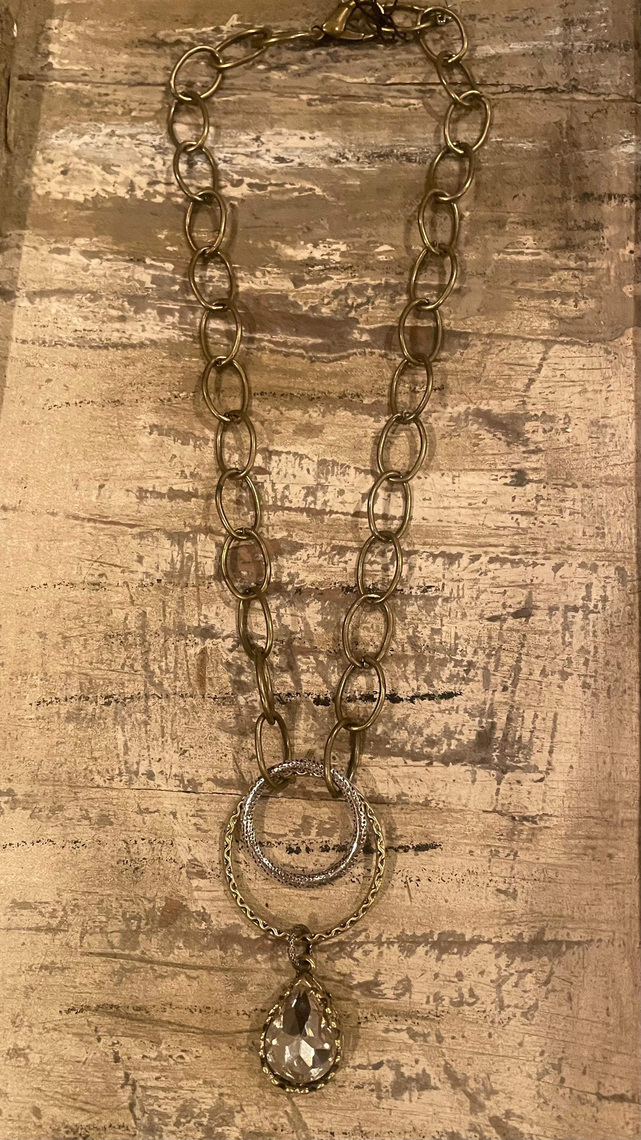 Necklace Short Thick Chain w/ Rings & Bling Tear Drop