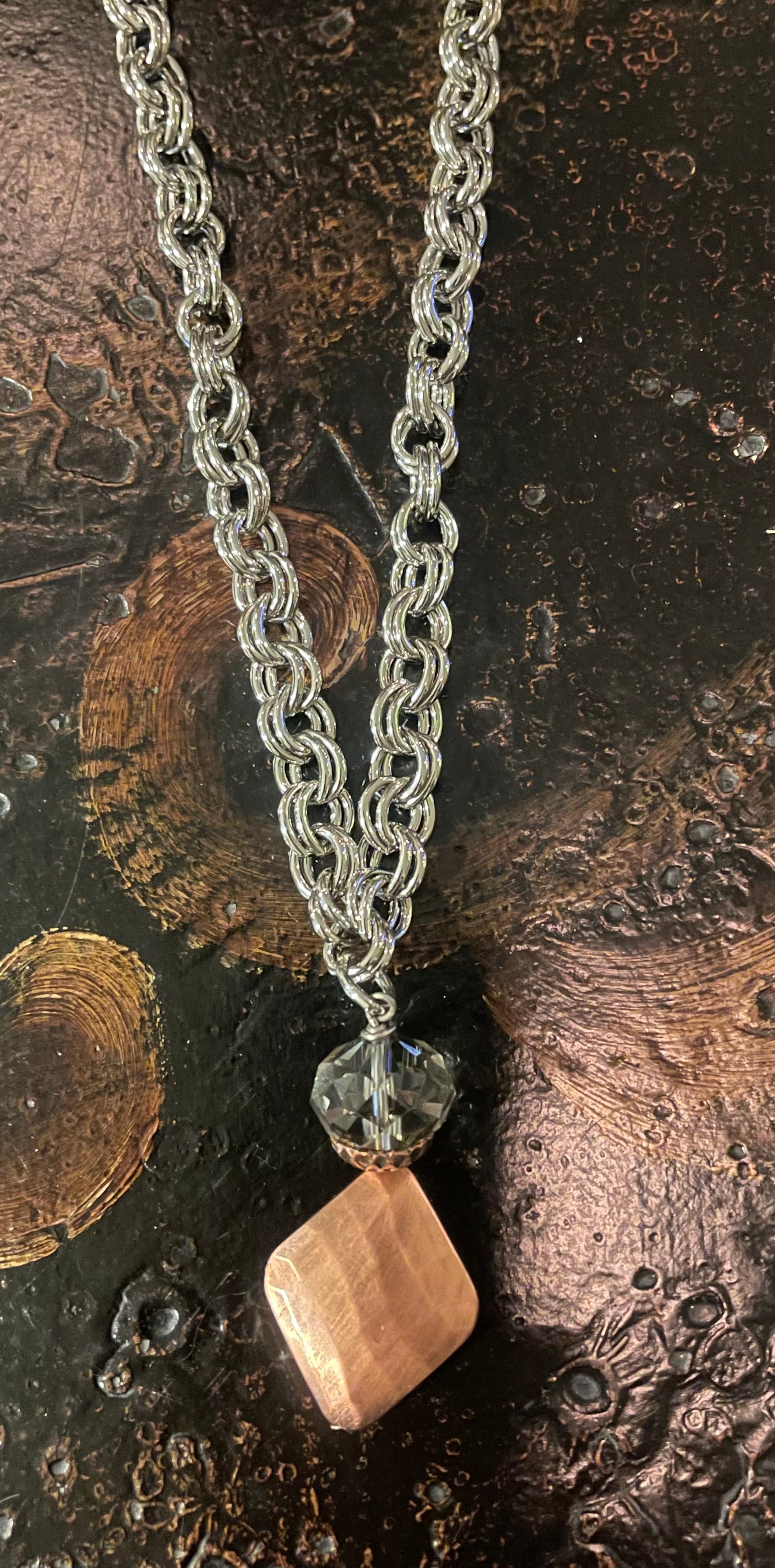 No Whining Copper Diamond Shaped Pendant w/ Crystal