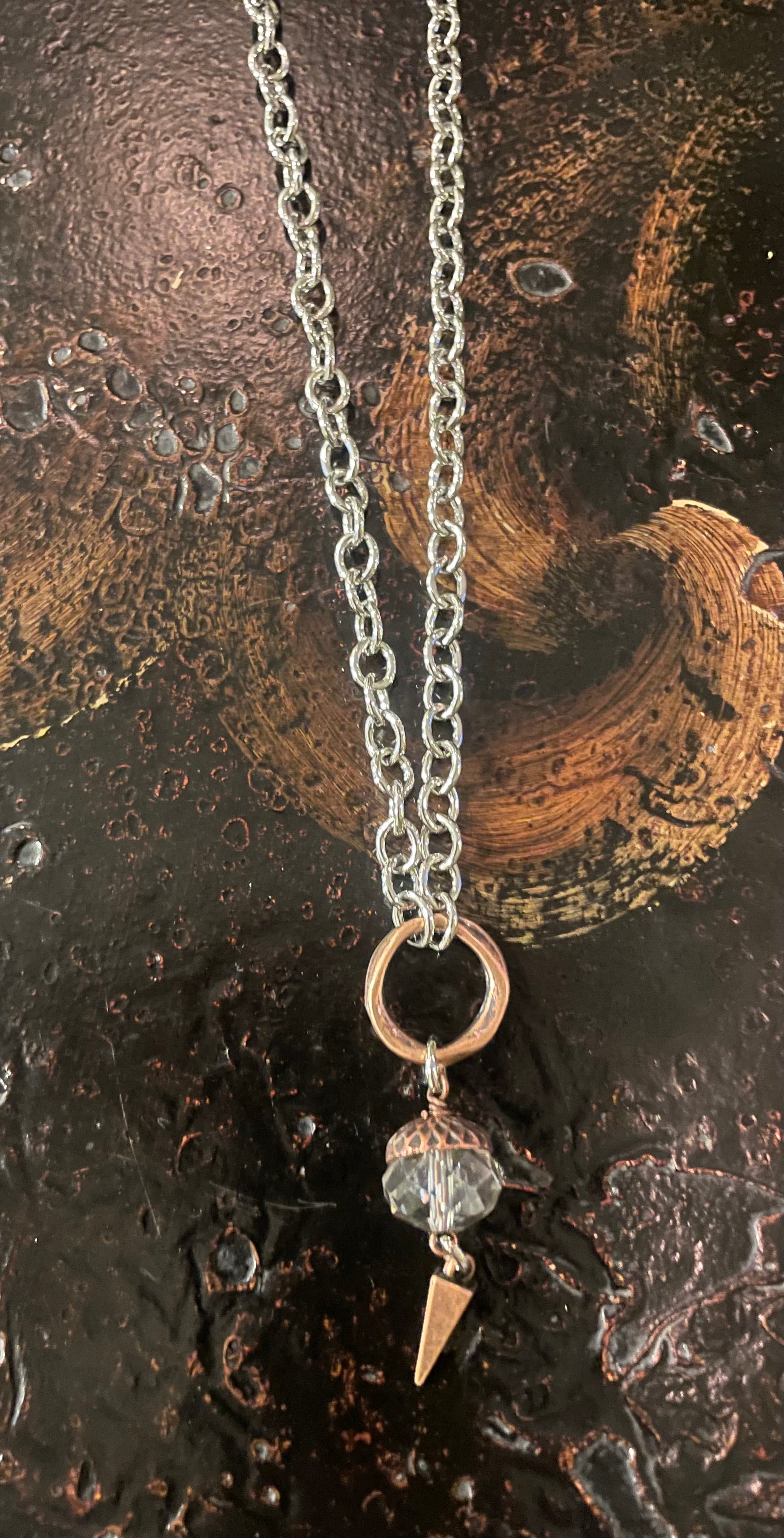 No Whining Copper Mixed Metal Crystal Drop Necklace